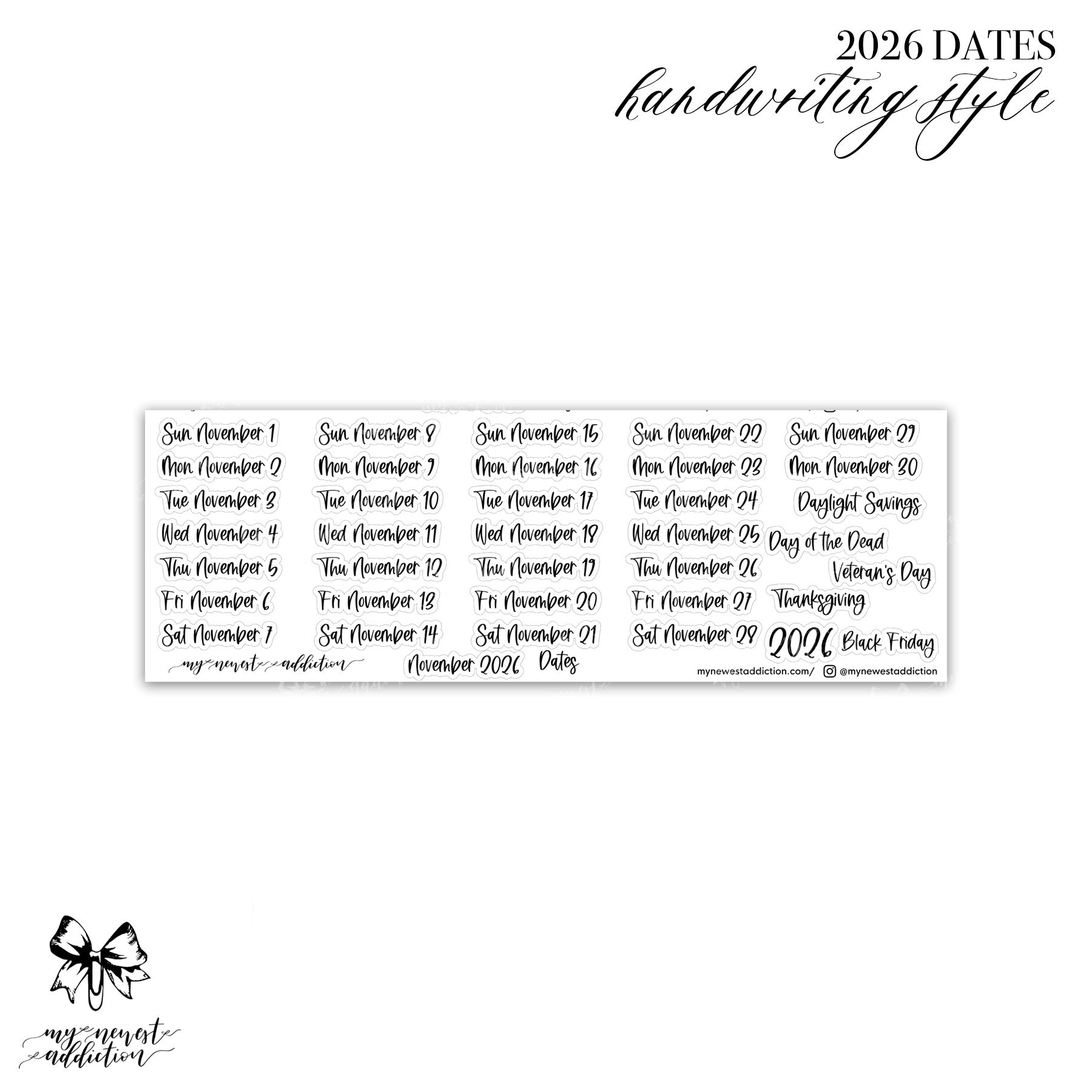 Monthly dates that include days of the week are an easy way to add a little something extra to your planner, without having to write out the dates.