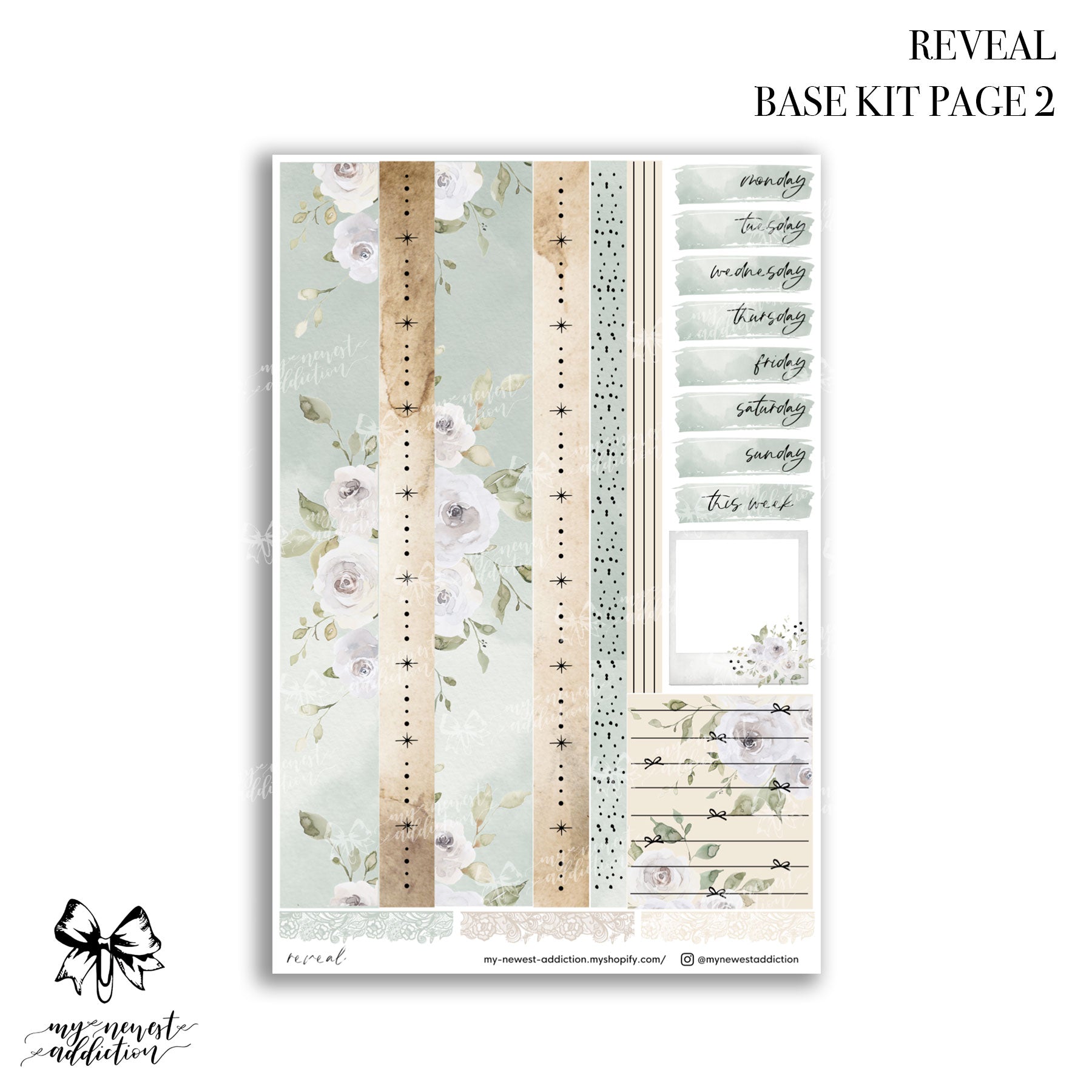 The base kit comes with 4 sheets, 3 of which are foiled. Each page in this kit is 4.75 x 7.25 inches. This kit is perfect for full size planners.