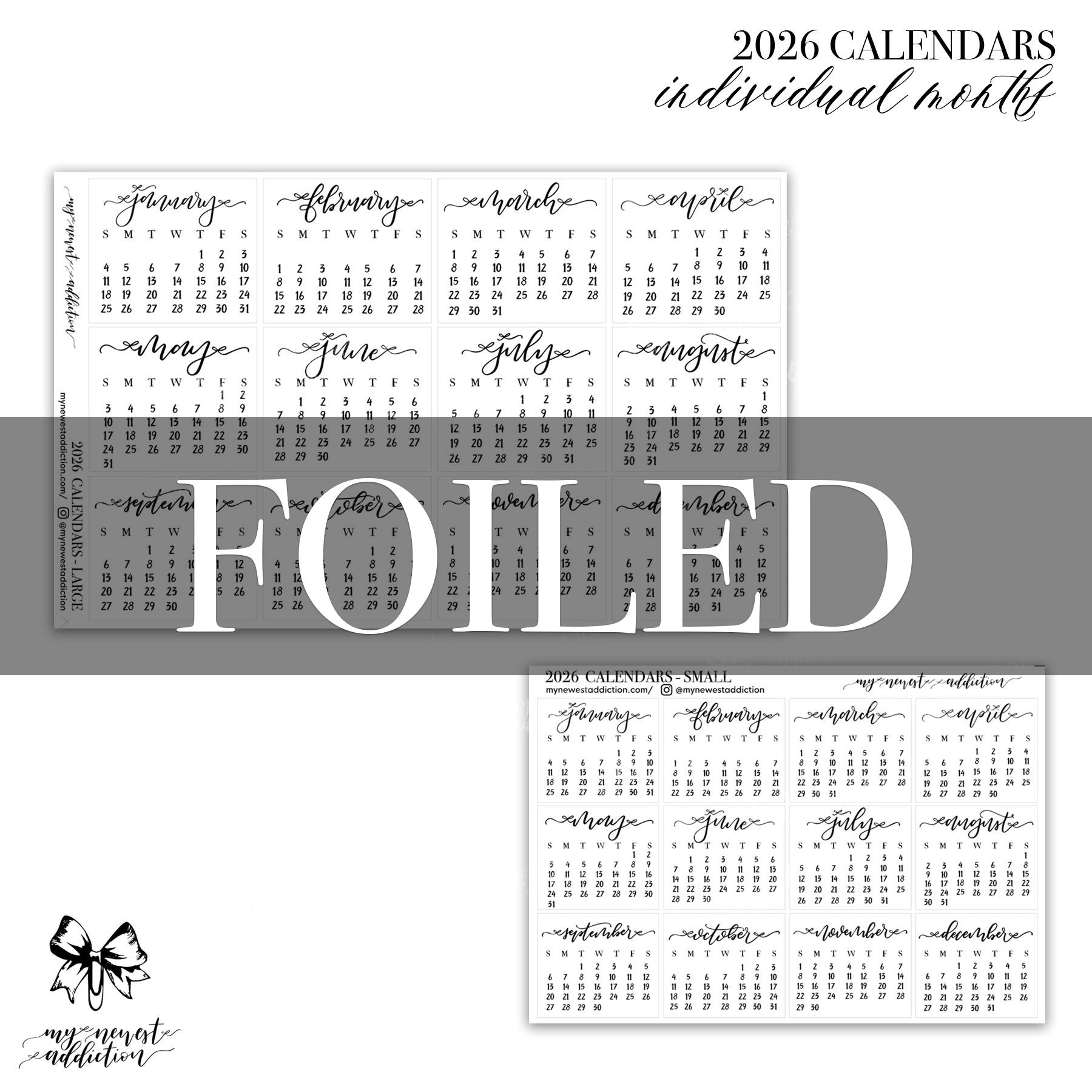 FOILED 2026 Calendars - Individual Months | lettering by Jesenia