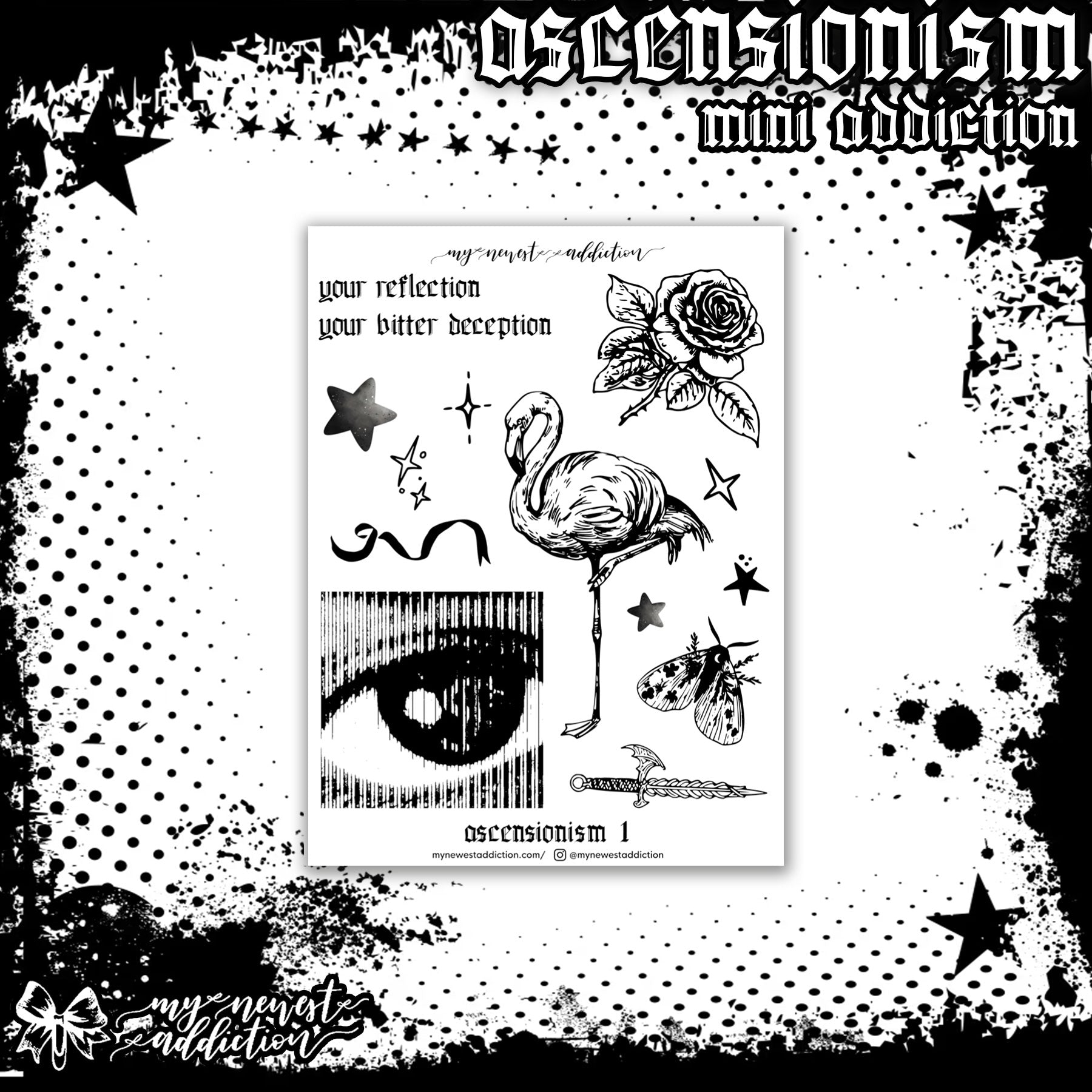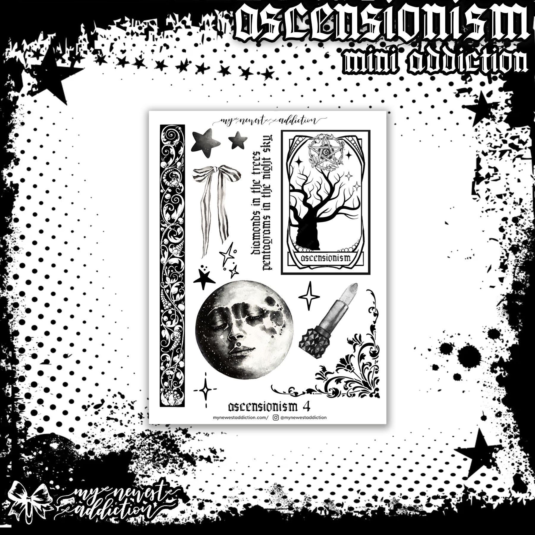 Ascensionism was inspired by a Sleep Token song. The song itself provides vivid imagery in the lyrics and I just wanted to make them black and white. Literally. This Mini Addiction is perfect for any planner or journal.