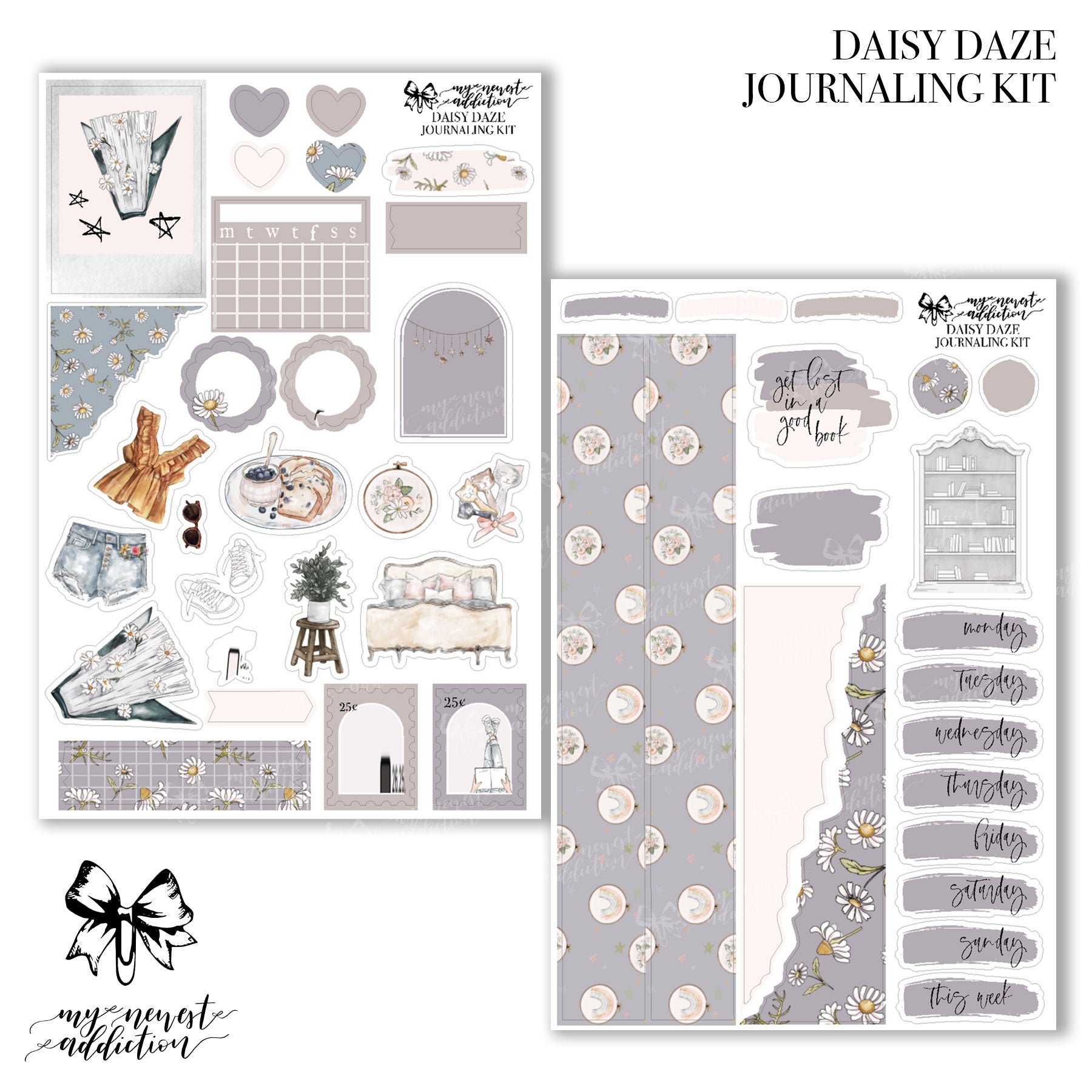 The Mini Addiction comes with 4 sheets (all foiled) and a sheet of date dots. Each page in this kit is 3.5 x 4.75 inches.  This kit is perfect for smaller planners.