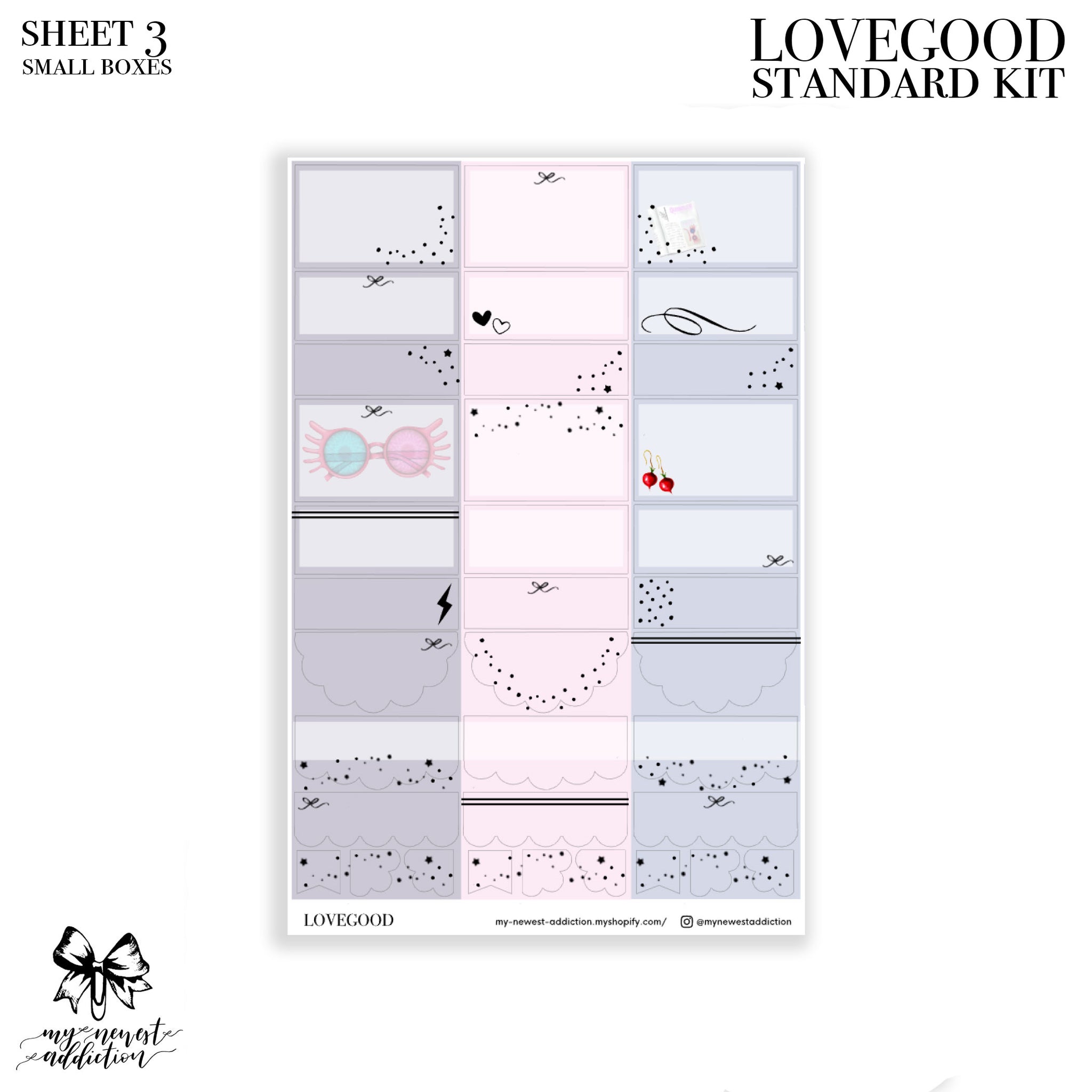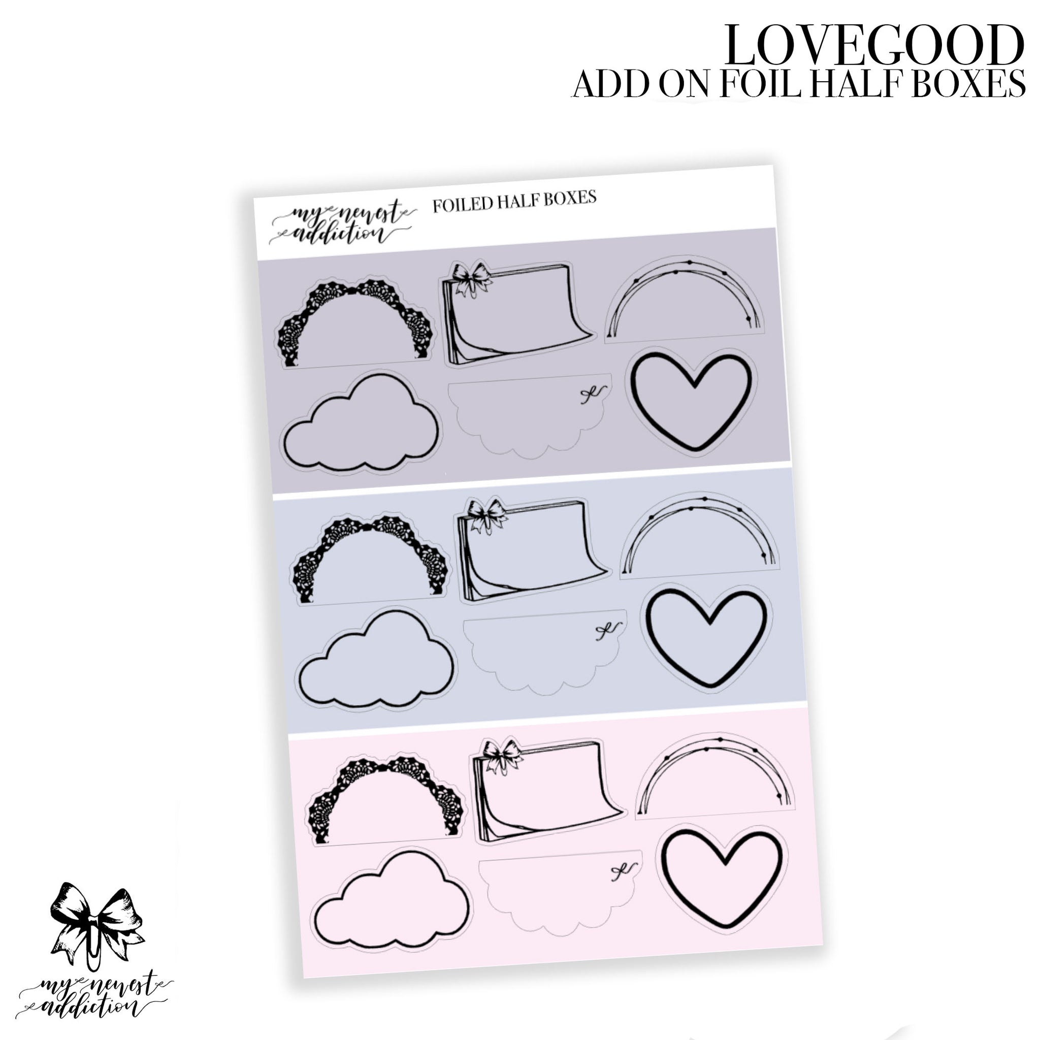 The add on foiled boxes will be foiled with holo silver. The boxes on this add on sheet are 1.5 inches and will not fit Hobo widths. This sheet measures approximately 4.5x7 inches.