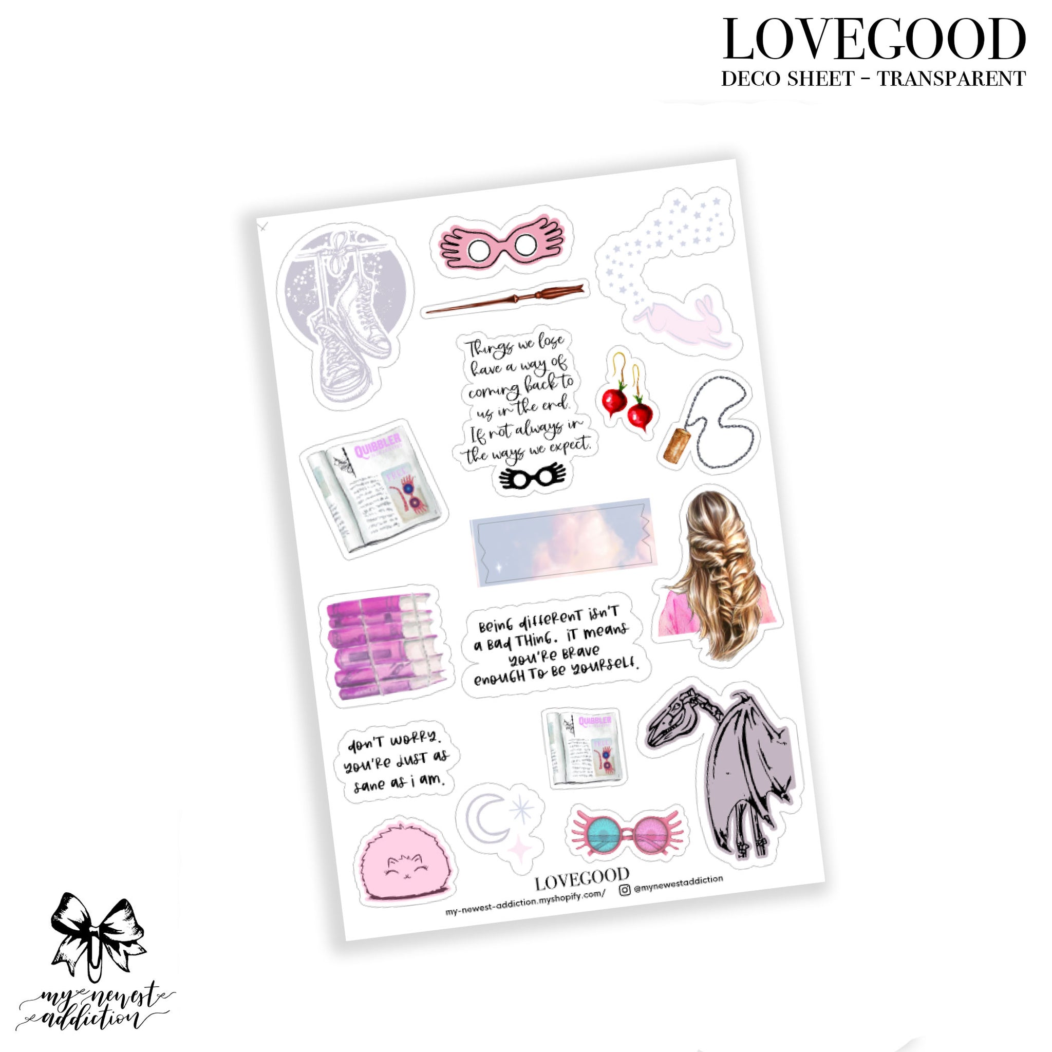 Lovegood is a magical collection that is perfectly represents Luna. Details from her patronus to her spectrespecs will captivate your imagination. This kit is holographic silver foiled.