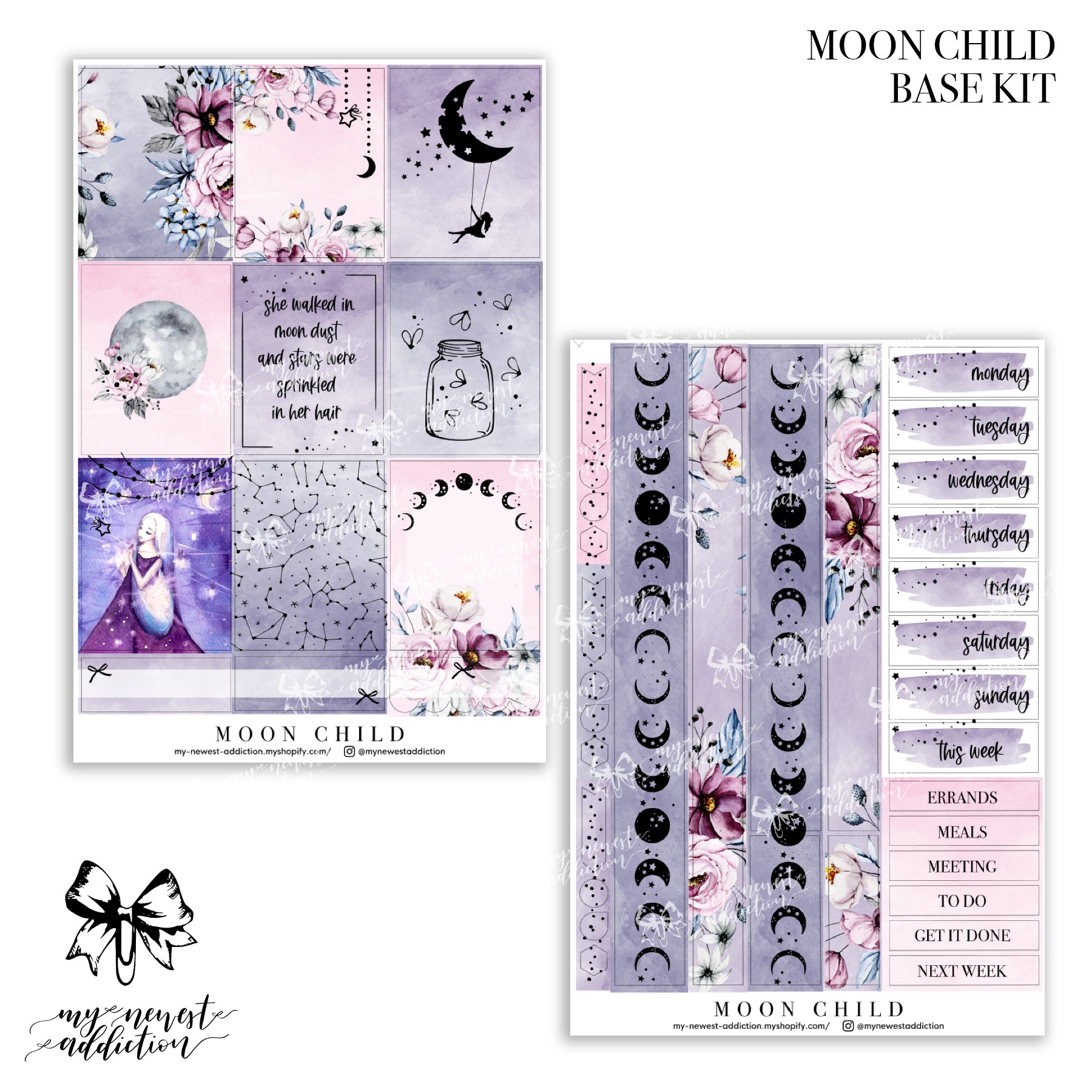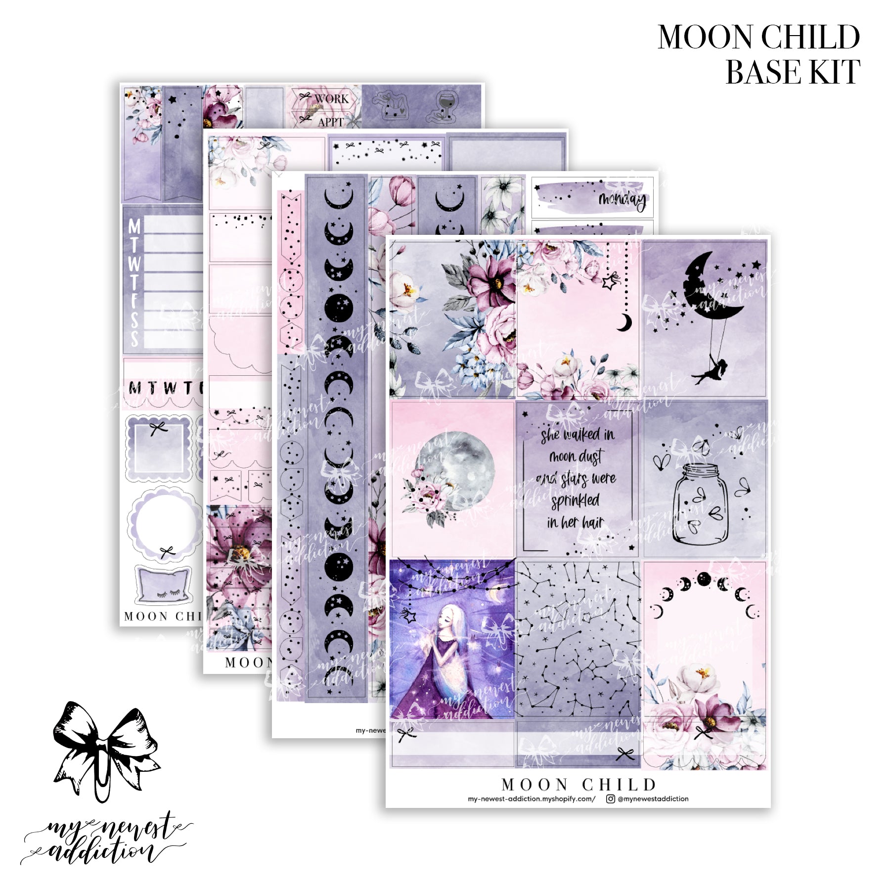 The base kit comes with 4 sheets (all foiled) and a sheet of date dots. Each page in this kit is 4.75 x 7.25 inches. This kit is perfect for full size planners.