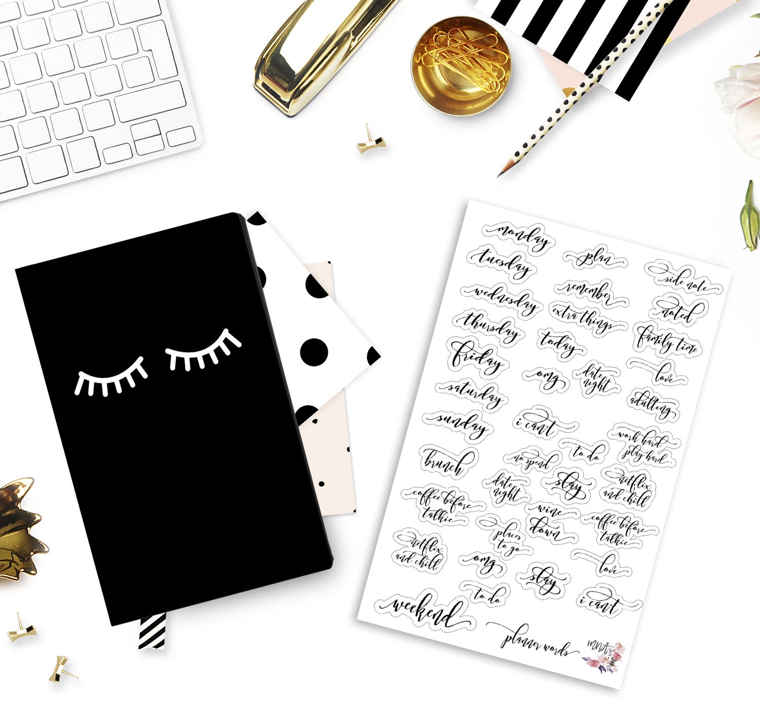 There are certain words that wind up in our planner every week and these stylized stickers are a perfect addition to any spread. It contains days of the week, planning words, netflix and chill, and so much more.