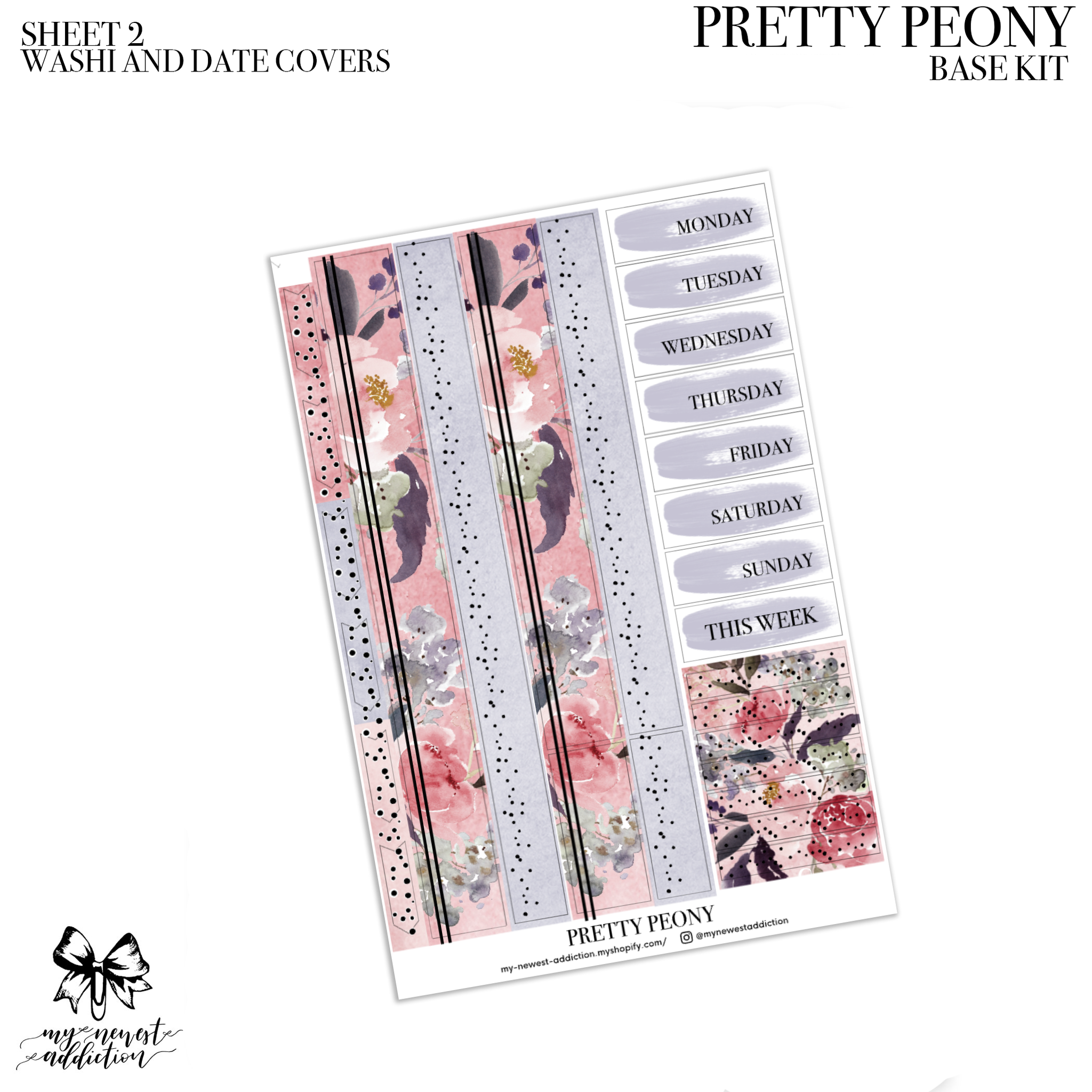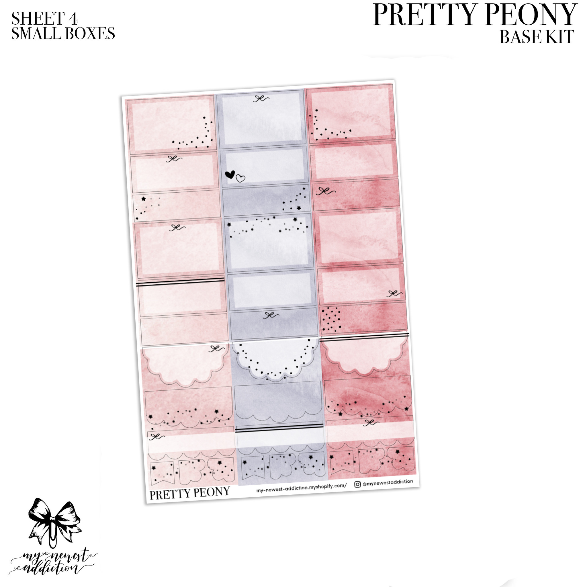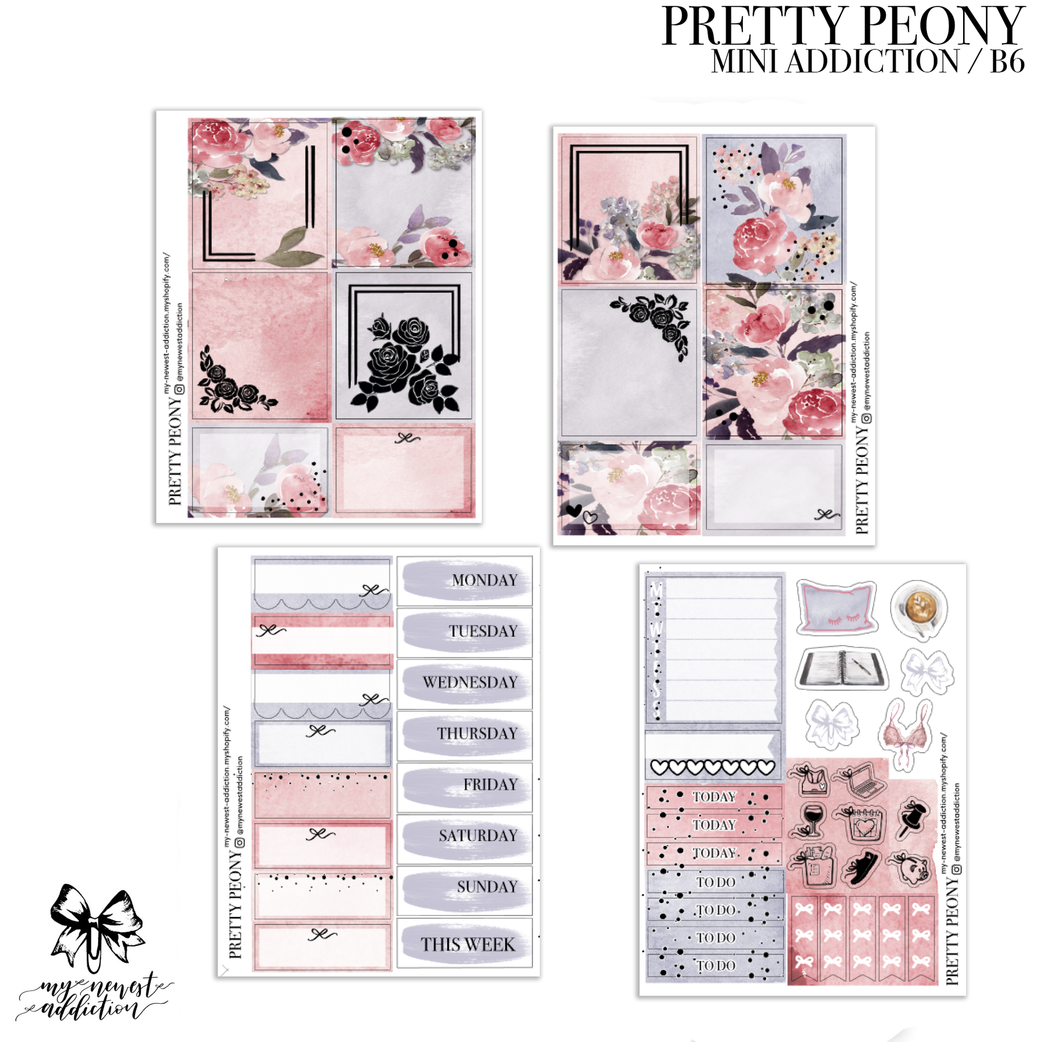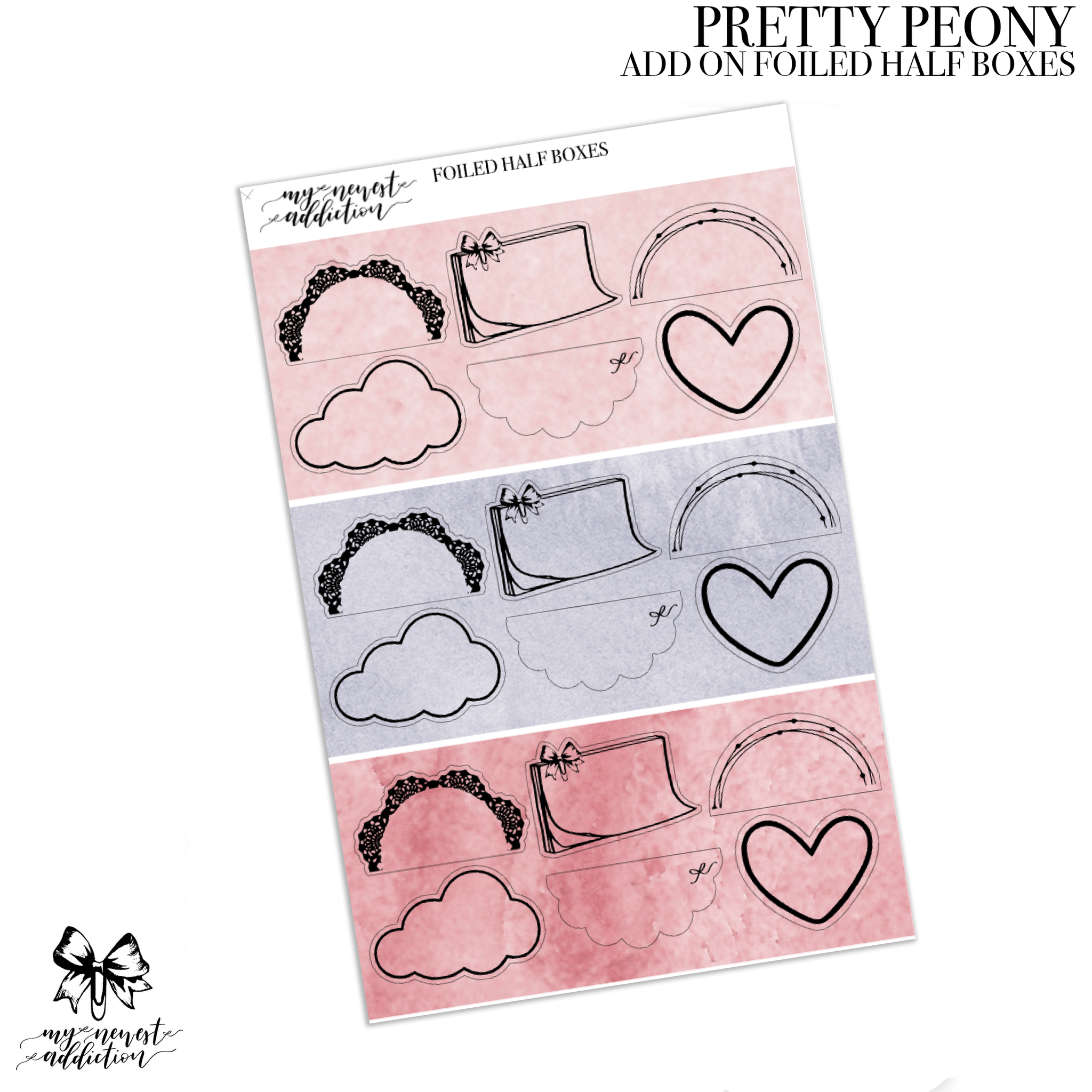 The Mini Addiction comes with 4 sheets (all foiled) and a sheet of date dots. Each page in this kit is 3.5 x 4.75 inches. This kit is perfect for smaller planners.