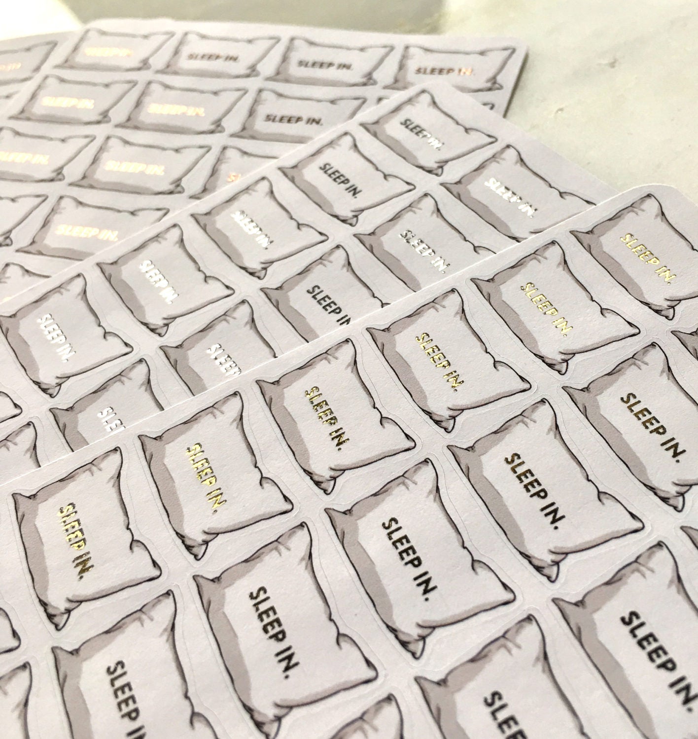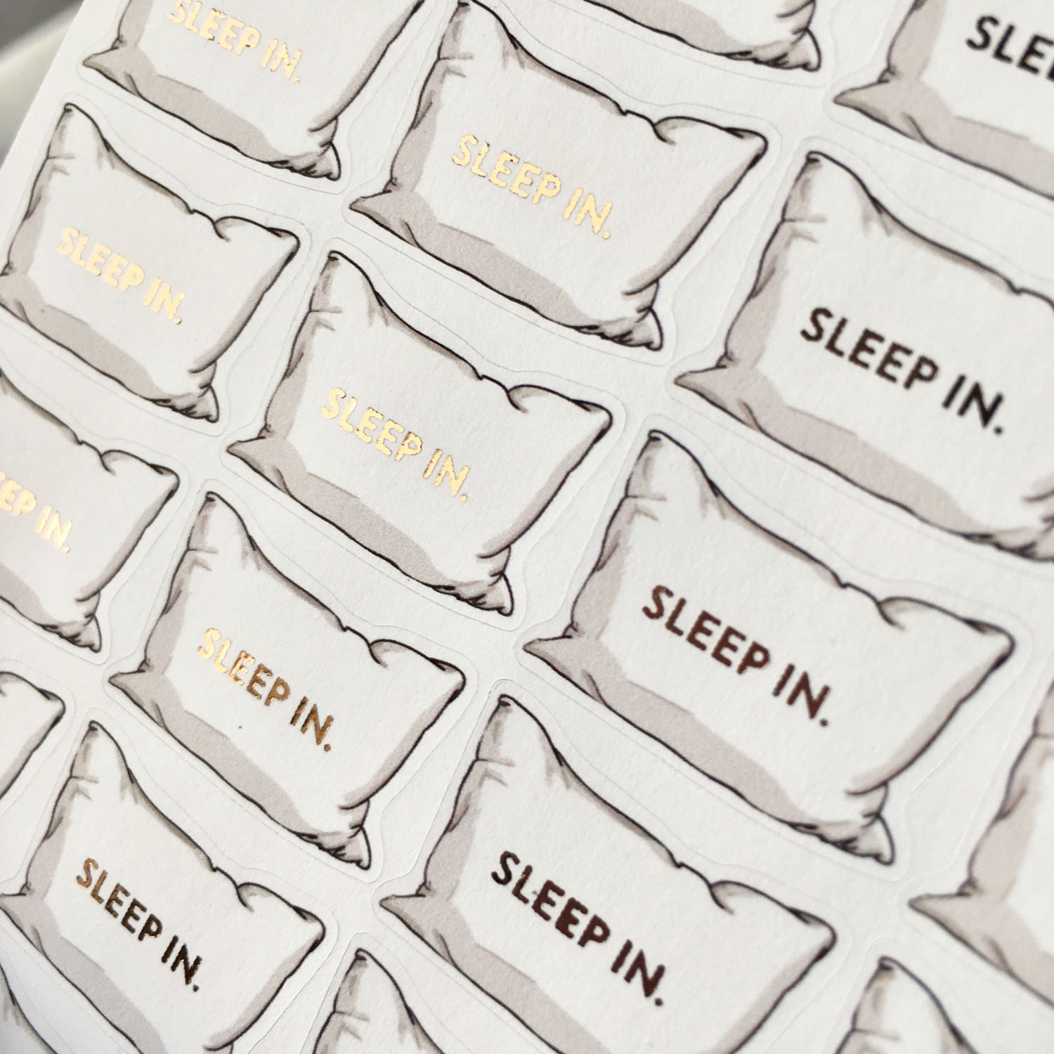 Sleeping in is my favorite part of the week so I like to embellish the occasion with a Foiled pillow sticker.