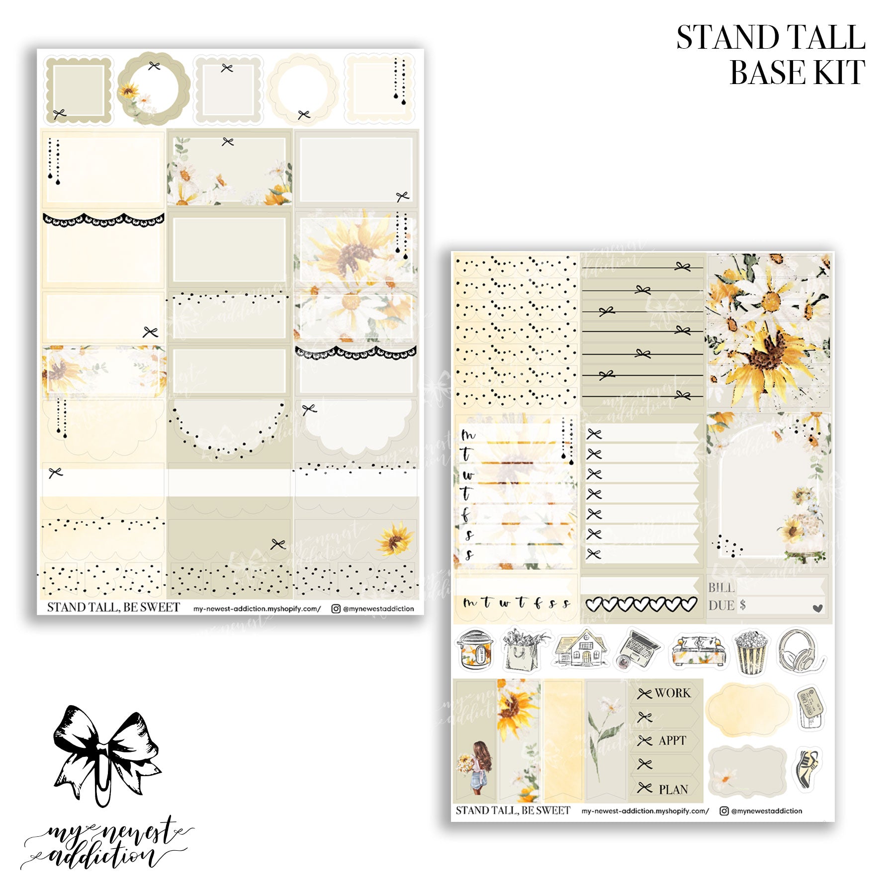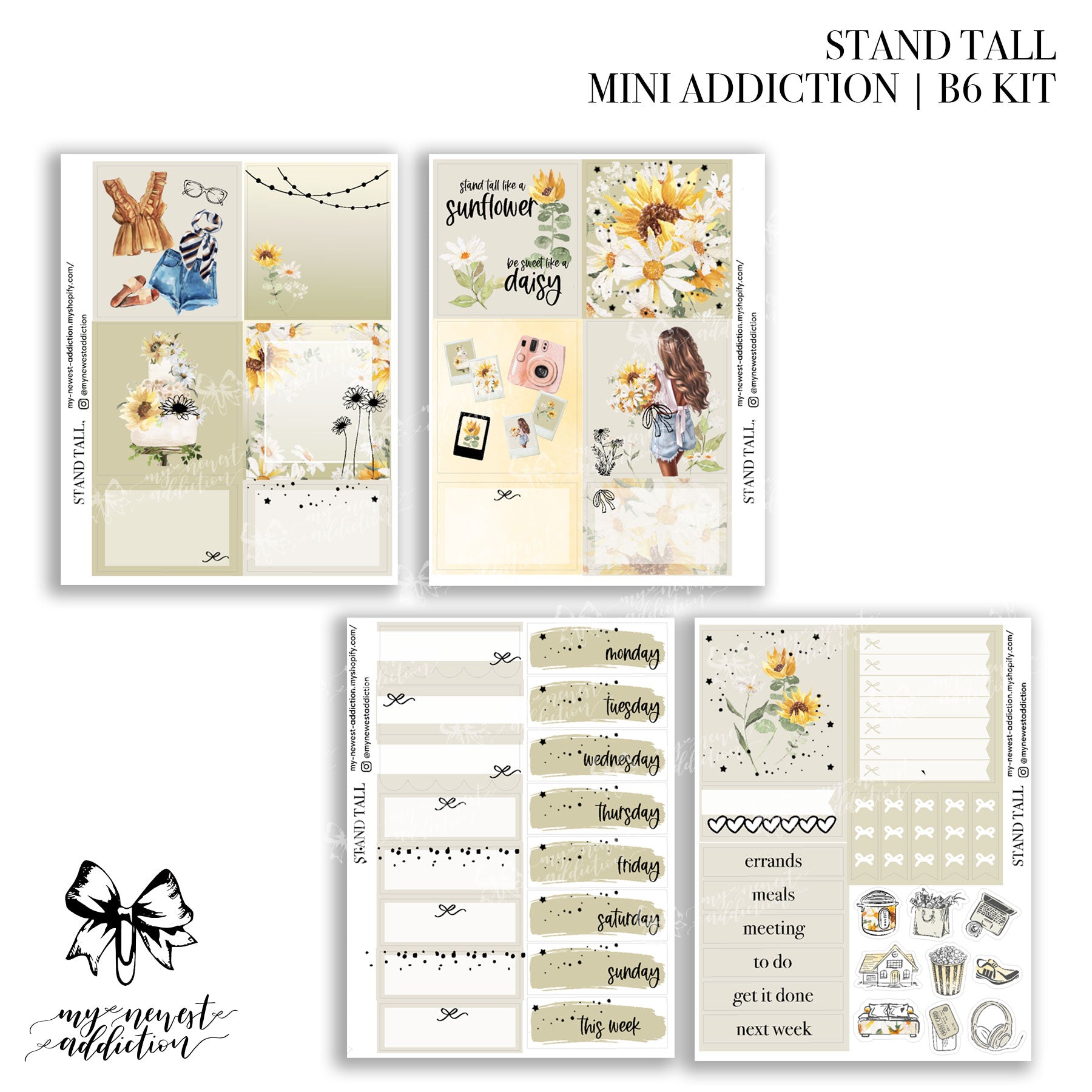 The Mini Addiction comes with 4 sheets (all foiled) and a sheet of date dots. Each page in this kit is 3.5 x 4.75 inches.  This kit is perfect for smaller planners.